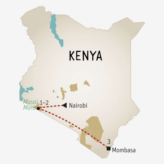 3. TAG: Masai Mara–Mombasa. Nach dem Frühstück fahren Sie zur Flugpiste für den Flug nach Mombasa. (F)