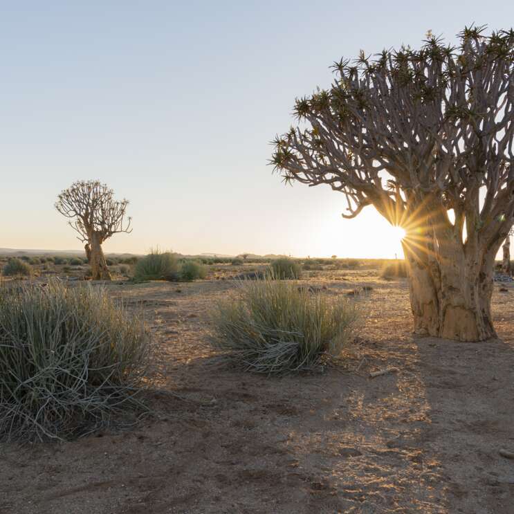 2. TAG: Kalahari–Fish River Canyon. (± 440 km). Die heutige Etappe führt Sie zum eindrucksvollen Köcherbaumwald. Weiterreise zum Fish River Canyon. Übernachtung Canyon Village o. ä. (F)