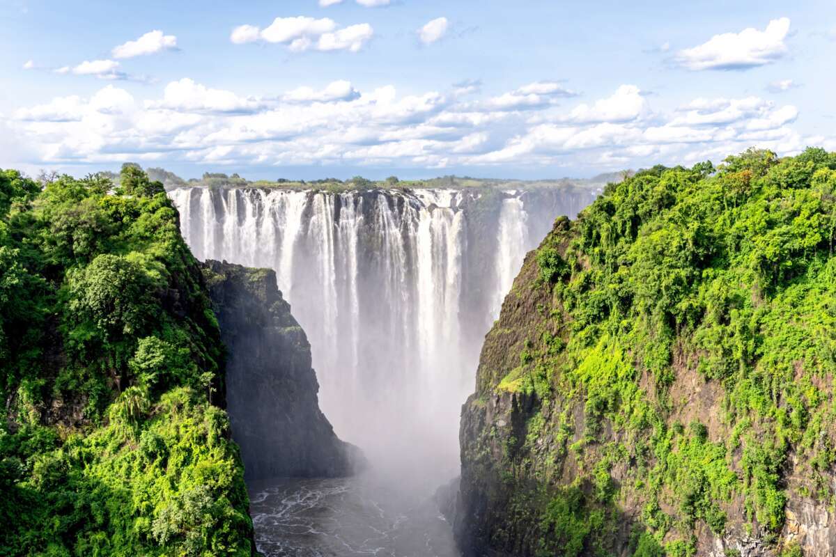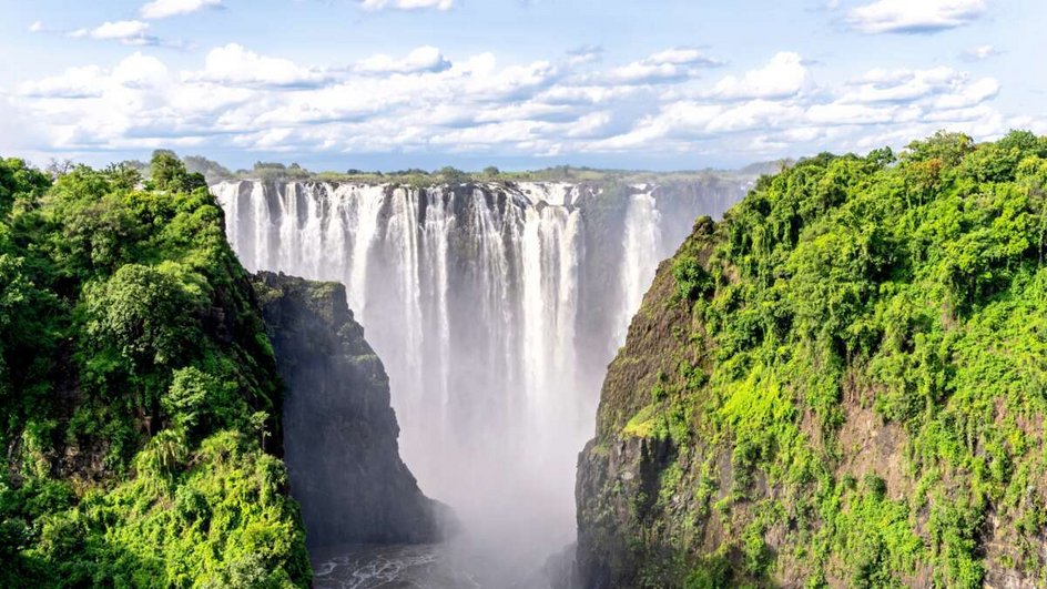 Entdecken Sie heute ausgiebig die berühmten Viktoriafälle. Die Fälle gehören zu den acht Weltwundern und sind die grössten Wasserfälle in Afrika. Es ist ein atemberaubender Anblick, wie die rauschenden Wassermassen die Fälle hinabstürzen. Die einheimischen Stämme nennen die Fälle „Mosi oa Tunya“ – der Rauch der donnert. Das Wasser stürzt hier auf einer Breite von 1708 m in die Tiefe. Wenn der Sambesi nach der Regenzeit (etwa März bis Mai) seinen höchsten Wasserstand hat, sind es 500 Millionen Liter Wasser, die hier pro Minute die 103 m in die tiefe Schlucht hinabfallen. Im Nationalpark, entlang der Fälle, führt ein Wanderweg, der Ihnen viele verschiedene Perspektiven auf das Naturschauspiel ermöglicht. Auch Helikopterausflüge sind eine beliebte Art die Wasserfälle zu besichtigen (fakultativ, vor Ort zahlbar). (Frühstück)