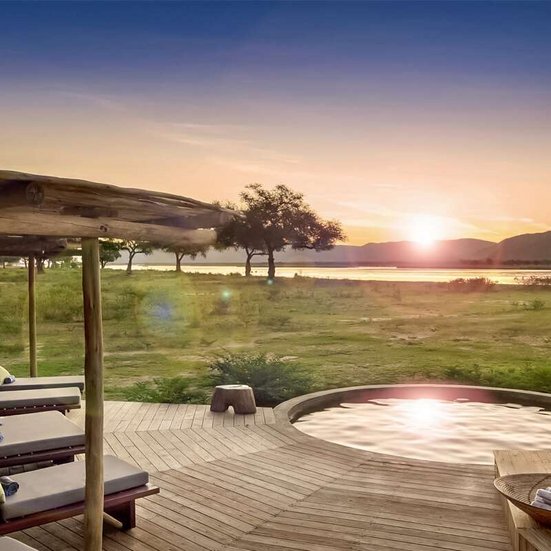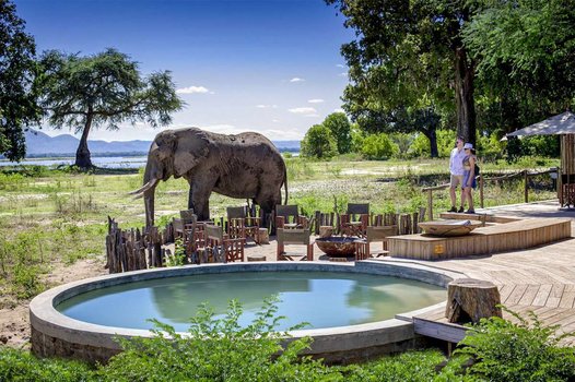 Zu den Aktivitäten gehören Wanderungen, Pirschfahrten, Kanusafaris und Fischen. Das edle Nyamatusi Camp liegt direkt am Ufer des mächtigen Sambesi-Flusses. Viele Tiere bewegen sich hier nah um das Camp und so beginnt Ihre Safari oftmals schon von der eigenen Terrasse aus!