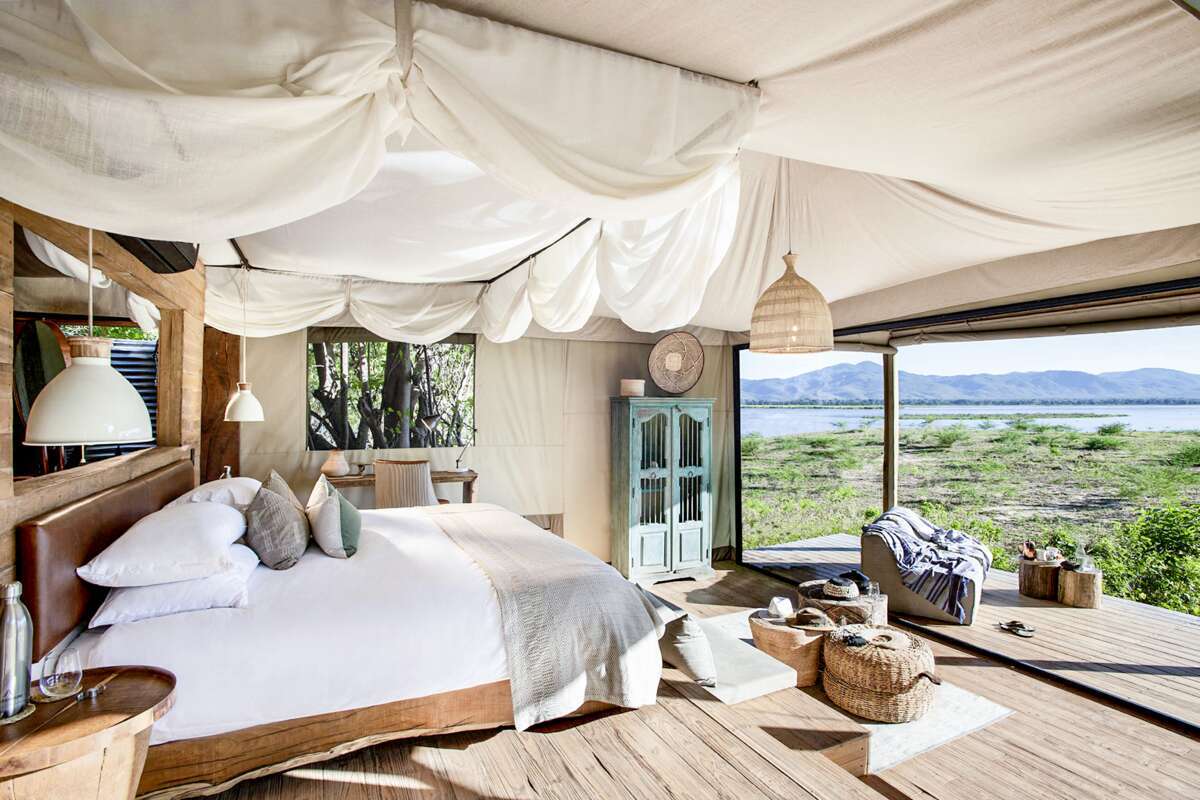 Die 6 luxuriösen Zeltchalets sind offen und luftig gestaltet mit bequemen Betten, Sitzgelegenheiten, en-suite Badezimmer mit Innen - und Aussendusche. Zusätzlich hat jede Suite einen grossen Aussenbereich mit Sitzecke, schöner Terrasse und kleinem, privaten Plunge Pool. Der Hauptbereich bietet eine Lounge, Bar und Essbereich mit „Boma“ für den abendlichen Drink am Lagerfeuer sowie einen Pool. Beim Bau wurde auf ökologische Gesichtspunkte geachtet und so wird das gesamte Camp von Solarstrom versorgt.