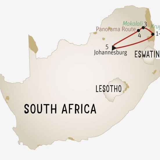 1. TAG: Johannesburg–Krüger Nationalpark. (± 450 km). Um ca. 08:30 Uhr werden Sie in Ihrem Stadthotel abgeholt. Begrüssung durch Ihre deutsch resp. englisch sprechende Reiseleitung. Die Reise führt Sie nach Skukuza. Das Mittagessen nehmen Sie unterwegs ein. Anschliessend fahren Sie weiter zum Krüger Nationalpark. Am Nachmittag unternehmen Sie eine Pirschfahrt. Übernachtung Bronze Skukuza Safari Lodge o. ä. (A) Silver Savanna o. ä. (A) Gold Sabi Sabi Earth Lodge o. ä. (A)