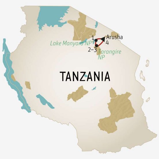 4. TAG. Tarangire Nationalpark–Arusha. Nach drei intensiven Safari Tagen verabschieden Sie sich heute vom Busch und fahren zurück nach Arusha, wo Sie ein Mittagessen einnehmen. (FM)