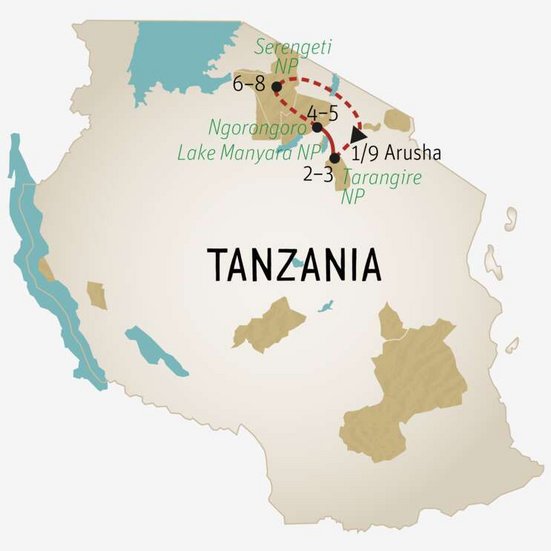 9. TAG: Serengeti Nationalpark–Arusha. Nach einem letzten Frühstück fahren Sie zur Flugpiste, wo Sie sich von Ihrem Reiseleiter verabschieden. Flug nach Arusha. (FM)