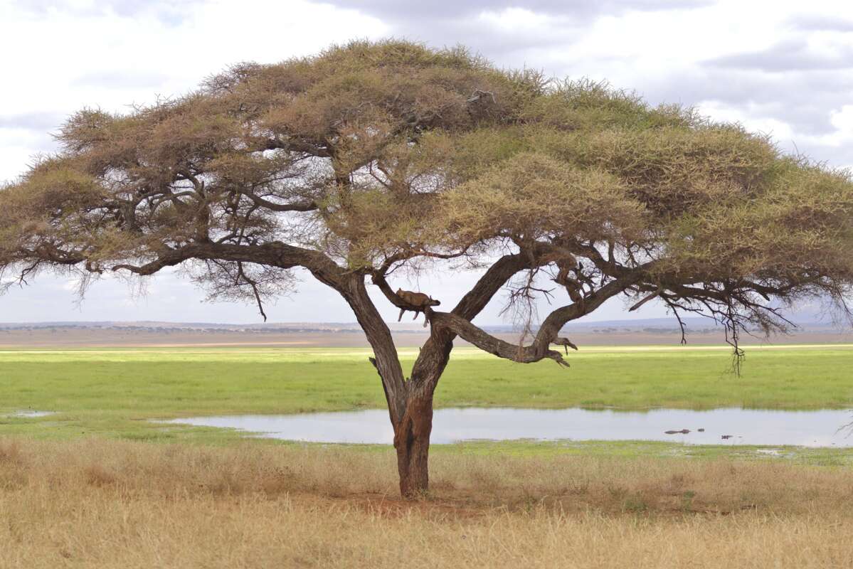 • Auf Akazienbäume kletternde Löwen im Lake Manyara Nationalpark