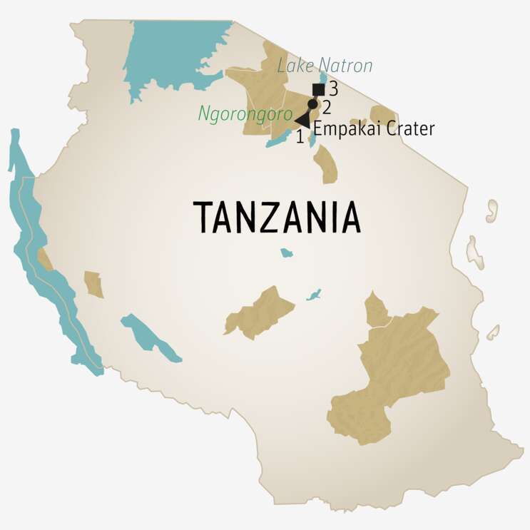 Am Grund des Kraters zwischen Akazien und Salzseen die Dichte der Tierwelt erleben.
