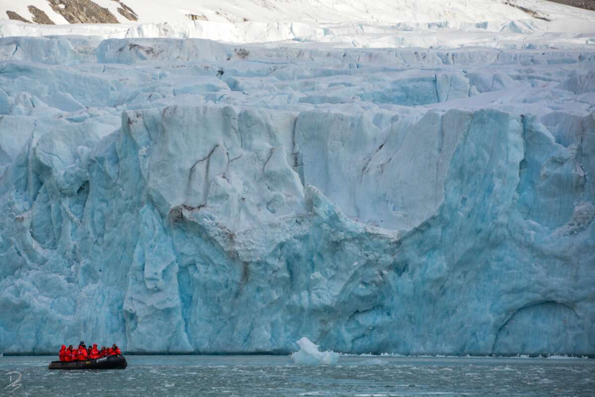 Ein Höhepunkt: Im Liefdefjord kreuzen Sie vor der eindrücklichen Kulisse des mächtigen Monaco-Gletschers. Sie unternehmen eine spektakuläre Ausfahrt mit den Zodiacs entlang der über fünf Kilometer breiten Abbruchkante des Gletschers.