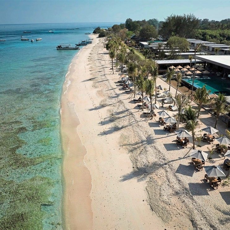 Architektonische Raffinesse, Beach Club Feeling, weißer Korallenstrand und eine faszinierende Unterwasserausstellung direkt vor der Haustür, begleitet von chilliger Musik - Willkommen im BASK Gili Meno.