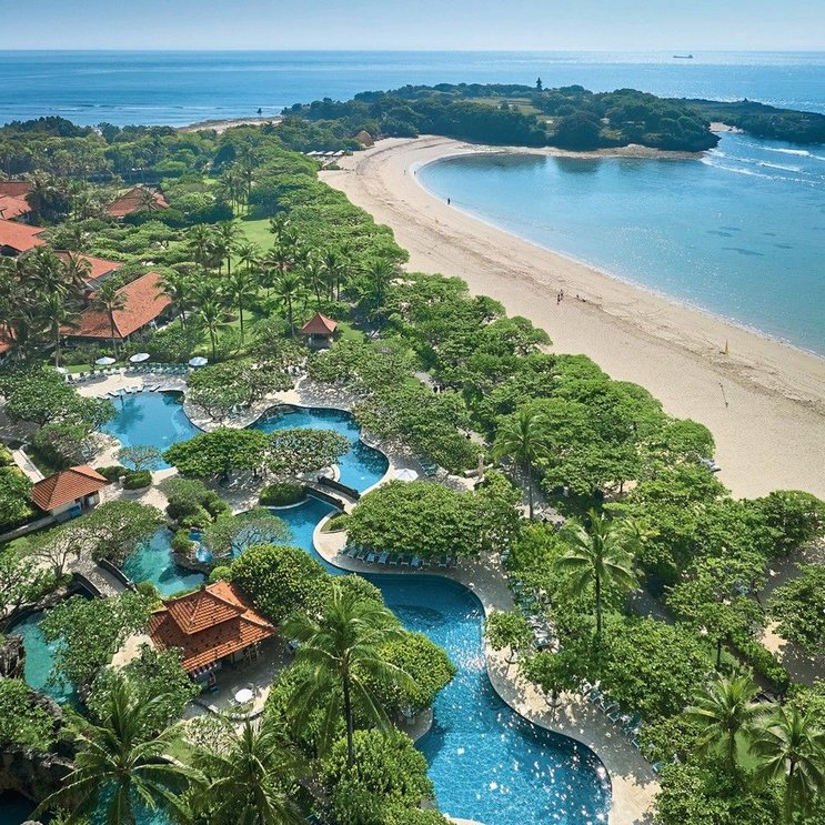 Weitläufiges, exklusives Resort mit Gästezimmern im modernen balinesischen Stil. Der tropische Garten mit Teichen, Lagunen und dem Blick auf das Meer ist der ideale Ort zum Entspannen.