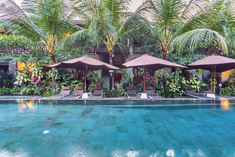 Rund um den Pool formieren sich die eleganten Wohneinheiten. Die Deluxe-Zimmer liegen im ersten Stock des Gebäudes auf Höhe der Baumwipfel.