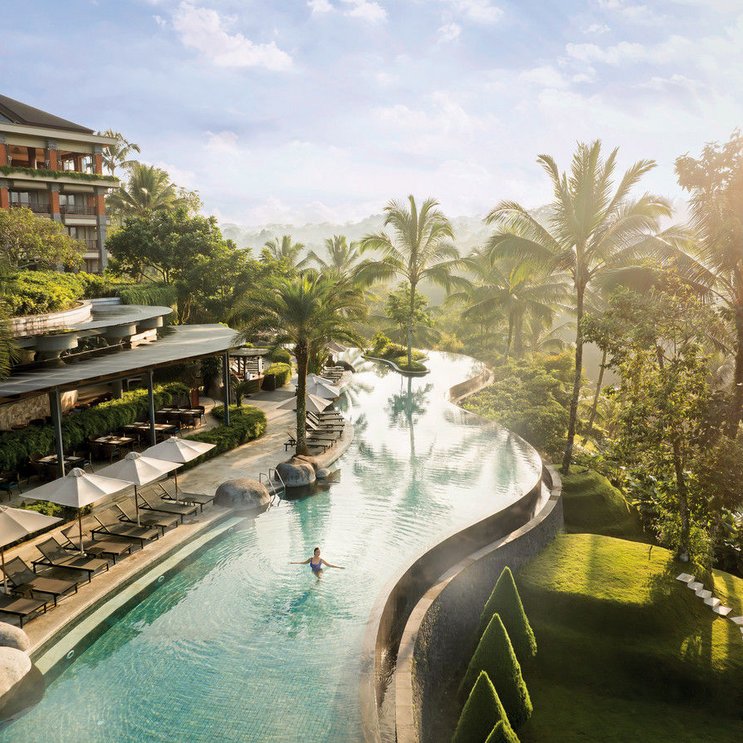 In einem grünen Tal versteckt sich das Luxusresort, umgeben vom Bambuswald. Von jedem Raum offenbart sich ein wunderschöner Blick auf die Landschaft. Lauschen Sie den Stimmen der Natur während Sie im 89 m langen Infinitypool gefühlt ins Grün hineinschwimmen – Sie werden verzaubert sein!