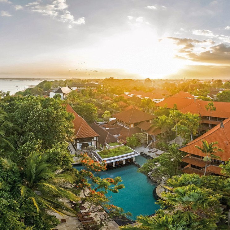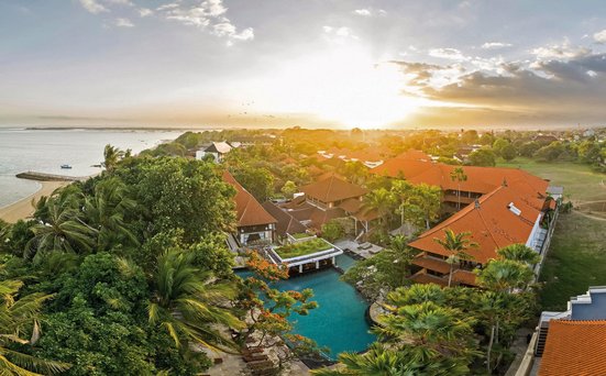Das Refugium im ruhigen Südosten der Insel verwöhnt seine Gäste nach balinesischer Tradition. Eingebettet in den wunderschönen Garten sind das Haupthaus, die Bungalows und die Bereiche Premium Deluxe & Santrian Club mit separatem Pool und modernen Unterkünften mit Bali-Flair.