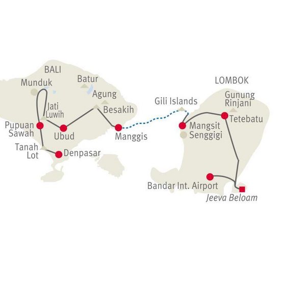 Mit dem Schnellboot überqueren Sie die tiefe Meerenge zu den Gili Inseln vor Lombok, wo Sie in ein lokales Boot umsteigen. Mit Maske, Schnorchel und Flossen entdecken Sie die wunderbare Unterwasserwelt. Am Nachmittag Überfahrt nach Lombok. Flora und Fauna von Bali und Lombok unterscheiden sich stark.