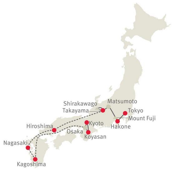 Ein Erlebnis der Extraklasse verspricht diese umfassende, formvollendete Tour durch das Land der aufgehenden Sonne. Eine Reise voller Höhepunkte, welche an Vielfalt kaum zu übertreffen ist und erst noch von einer erfahrenen Deutsch sprechenden Reiseleitung begleitet wird.