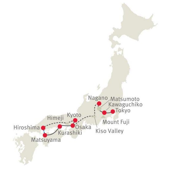 Die Seto-Inlandsee, ein Meeresarm mit hunderten von bewaldeten Inseln ist eine der reizvollsten Regionen des Landes. Sie folgen einem Teil der berühmten Pilgerroute und besichtigen den Maegamiji-Tempel. Zurück auf der Hauptinsel Honshu bewundern Sie in Kurashiki die malerische Altstadt aus der Edo-Zeit.
