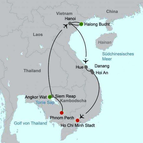 Neben der historischen Tempelstadt Angkor erleben Sie den Tonle Sap See bei einem Bootsausflug und lernen die Halong Bucht und die Metropole Ho Chi Minh Stadt kennen.