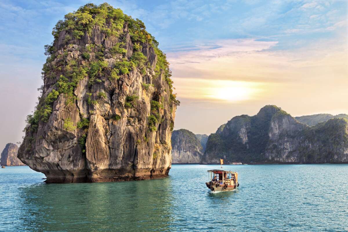 (Sa) Nach dem Frühstück um ca. 7.30 Uhr fahren Sie in Richtung Halong-Bucht (Fahrtzeit ca. 3 Std.). Sie erreichen am Mittag die Halong-Bucht und brechen Sie zu einer ca. vierstündigen Bootsfahrt auf. Auf einem traditionellen Holzboot fahren Sie durch smaragdfarbenes Wasser vorbei an vielen Inseln undzahlreichen Grotten. Sie machen Halt bei einer der Inseln und erkunden eine der geheimnisvollen Höhlen von innen. Sie geniessen ein leckeres Meeresfrüchte-Mittagessen an Bord und fahren vorbei an vielen schwimmenden Dörfern. Schauen Sie den Fischern zu, die ihre Netze zum Fischfang auswerfen und erhalten Sie einen Einblick in den Rhythmus des täglichen Lebens an der Bucht. Am Nachmittag geht die Fahrt zurück nach Hanoi. Ca. 340 km (F, M)