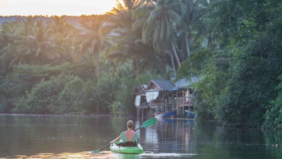 Zwei Tage voller Dschungelfeeling. Mit einem Boot fahren Sie durch das einmalige Ökosystem von Mangroven, plaudern mit Fischern, wandern durch den Dschungel und paddeln zu einem grossartigen Wasserfall für ein kühles Bad. Dazwischen geniessen Sie Ihre einzigartige Unterkunft auf und am Wasser.