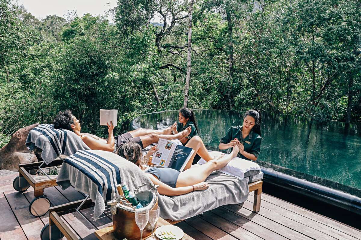 Erfahrene Ranger führen durch den Dschungel und geben ihr Wissen über die heimische Tier- und Pflanzenwelt weiter. Wie Sie in diese wilde Natur eintauchen, wählen Sie selbst: zu Fuss, mit dem Safari-Jeep, per Mountainbike oder doch auf dem Expeditionsboot? Auf keinen Fall verpassen dürfen Sie den «Sundowner» mitten im Fluss und auch dem Spa sollten Sie unbedingt einen Besuch abstatten, denn nicht nur die Treatments sind hier phänomenal.