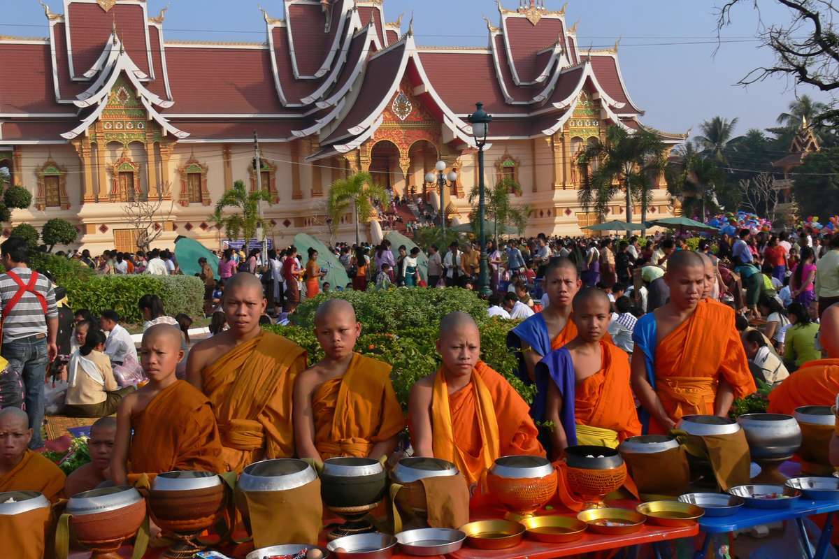 Vormittags Besuch der schönsten Tempel von Luang Prabang, mittags Fahrt mit dem Zug in die Hauptstadt Vientiane. Hier besuchen Sie die wichtigsten Sehenswürdigkeiten und das Nationalheiligtum That Luang.