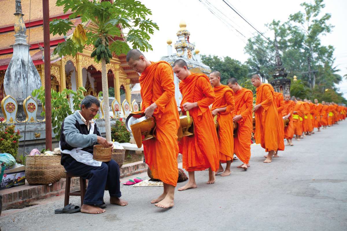 Heute heisst es früh aufstehen: Barfuss und in absoluter Stille ziehen die Mönche in einer eindrucksvollen Prozession durch die Strassen der Stadt und nehmen Almosen entgegen. Ihre Reiseleitung wird Sie in die Tradition einweihen. Per Boot reisen Sie zu den Höhlen von Pak Ou. Auf dem Rückweg bewundern Sie die lokale Reiswein Herstellung. Dem Angebot auf dem farbenprächtigen Hmong Markt ist schwer zu widerstehen.