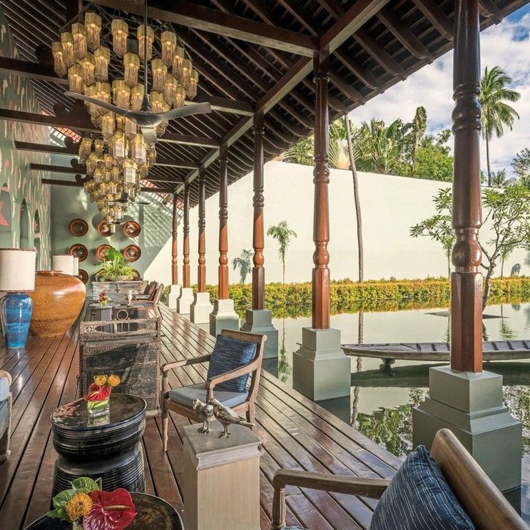 Garden View Upper Floor (18) ca. 68 qm: Mit hohen Decken und einem von einer Glaskuppel überspannten Marmor-Luxusbad. In der 1. Etage, mit großer Veranda, Tagesliege, Essbereich.