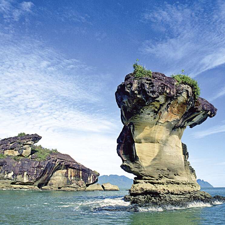 Sie fahren von Kuching nach Bako. Dort unternehmen Sie eine ca. halbstündige Bootsfahrt in den National¬park (abhängig von Wetter und Gezeiten). An diesem Tag haben Sie die Möglichkeit, durch den wunder¬schönen Park zu wandern und die landestypische Flora und Fauna zu entdecken. Mit etwas Glück können Sie einige der zahlreichen einheimischen Affenarten wie die Silbernen Haubenlanguren, Makaken oder die ausschliesslich auf der Insel Borneo beheimateten Nasenaffen beobachten. Ca. 48 km (F, M, tweilw. als Lunchpaket)
