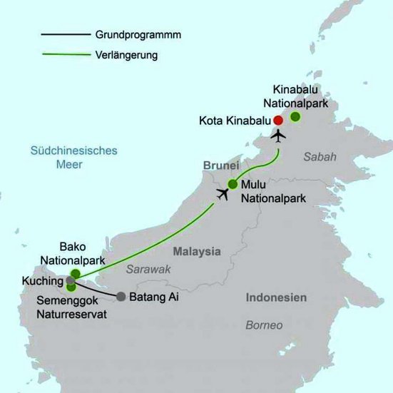 Lernen Sie die Naturwunder Borneos und die Iban kennen, die noch bis vor wenigen Jahrzehnten auf Kopfjagd gingen. Bestaunen Sie auch die Flora und Fauna des Bako Nationalparks.