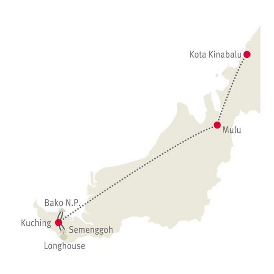 Ein Höhepunkt ist sicher der Besuch der Orang Utan Auswilderungsstation in Semenggoh. Bei der Fütterung kann man die wunderbaren Geschöpfe, die sich frei im Wald bewegen, aus der Nähe beobachten. Nachmittags Besuch eines Langhauses der Bidayuh. Viele Familien leben hier zusammen und Ihre Reiseleitung erzählt Ihnen mehr über die Geschichten, Legenden und Tabus dieses Volkes.