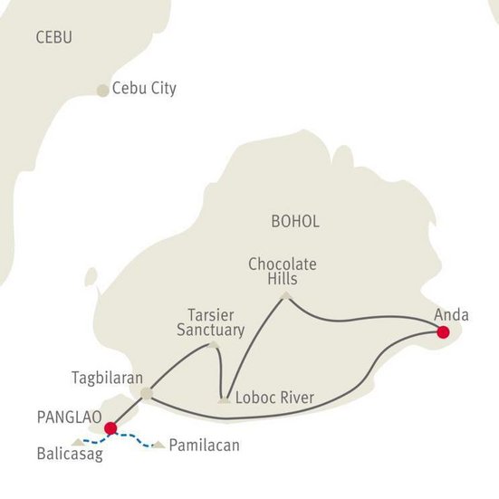 Bohol, das ist pure Exotik über und unter Wasser. Farbenprächtige Korallen an Steilwänden vor strahlend weissen Palmenstränden, putzige Koboldmakis in den Bäumen und ein Naturphänomen der Extraklasse – die Schokoladenhügel.