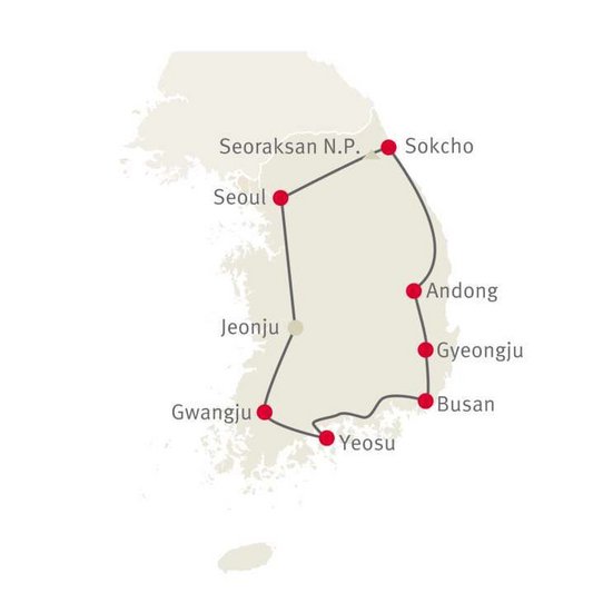 Heute wird es Zeit, Richtung Seoul aufzubrechen. Wir empfehlen zuerst den Besuch des charmanten Jeonju mit seinem traditionellen Hanok-Dorf. Anschliessend Rückkehr nach Seoul und Rückgabe des Mietwagens.