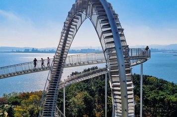 Eine spektakuläre Autobahn entlang der Küste, über Brücken und teilweise unter Wasser, führt über Geoje nach Tongyeong am südlichen Ende des Landes und weiter nach Gwangyang oder Yeosu. Unterwegs gibt es nebst der berühmten Schweizer Gondelbahn auf den Mireuksan-Berg auch kulturelle Höhepunkte wie die Einsiedelei Geumsan Boriam oder der Chokseongnu Pavilion zu sehen.