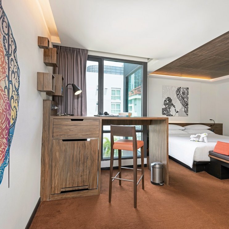 - 31-35 qm, Doppel, Deluxe, Schreibtisch, Dusche, Regendusche, Badeslipper, Haartrockner, Klimaanlage, individuell regulierbar, Minibar kostenpflichtig, Safe, TV (Internet-TV), Kaffee/Tee