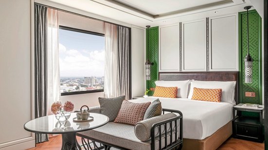 Top-Hotel mit spektakulärem Blick über die Stadt und die Landschaften ringsum. Im Inneren begeistern edle Eleganz und ein Interieur, inspiriert von der traditionellen Handwerkskunst des alten Königreichs Lan Na.