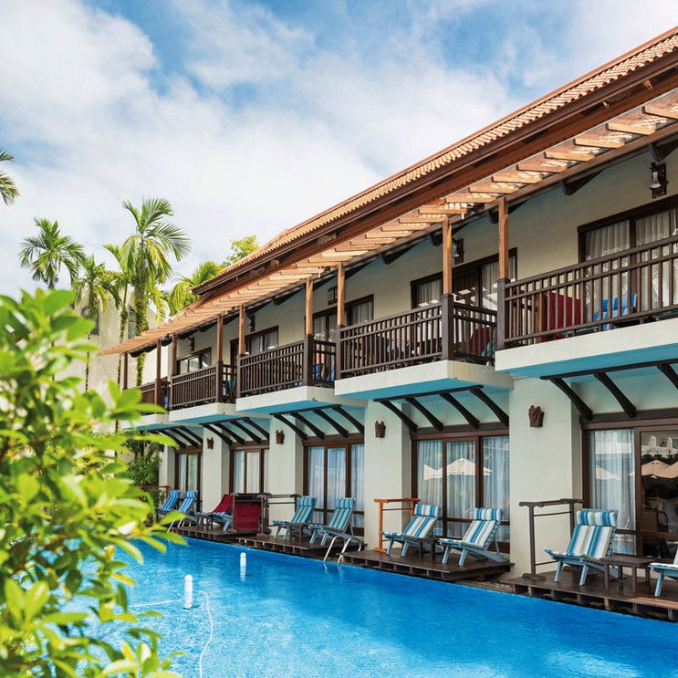 Ein Stück Thailand wie aus dem Bilderbuch: ein üppiger Garten mit Seerosenteichen, schöne Häuser mit viel dunklem Holz. Pools, Restaurants, Spa und Fitness-Center lassen keine Wünsche offen.
