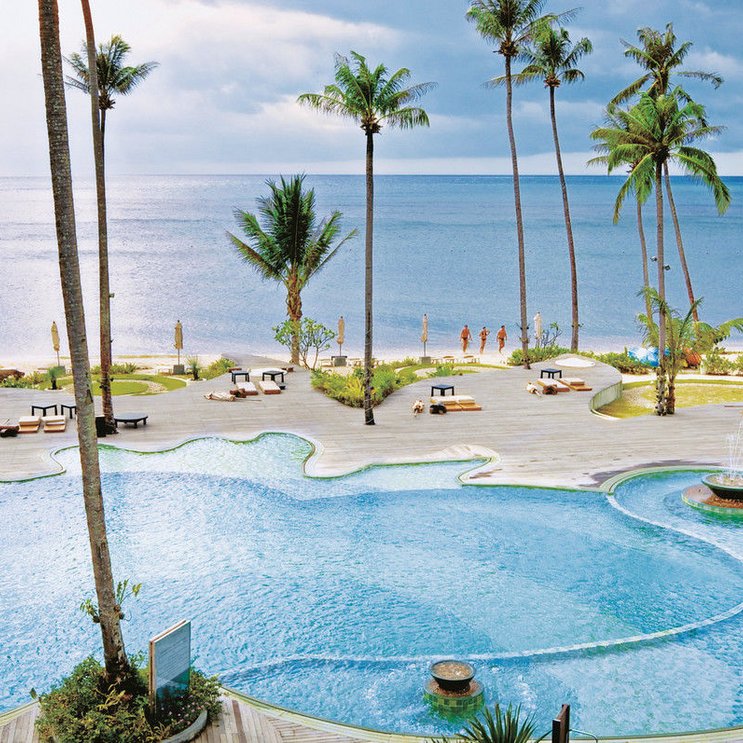 Reif für die Insel? Elegantes Inseldomizil im Thai-Stil direkt am Strand von Bai Lan. Auf der Liege am Pool dem Plätschern des Wasserfalls lauschen oder einen coolen Drink an der Poolbar genießen. Wow!