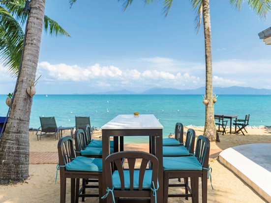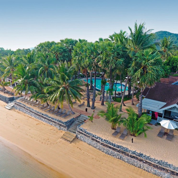 Wie im Paradies: Die idyllische Anlage bezaubert mit asiatischen Design und exzellentem Service. Das Restaurant Terrace bietet neben großartiger Küche auch einen wunderbaren Blick auf die Nachbarinsel – Meeresrauschen inklusive!