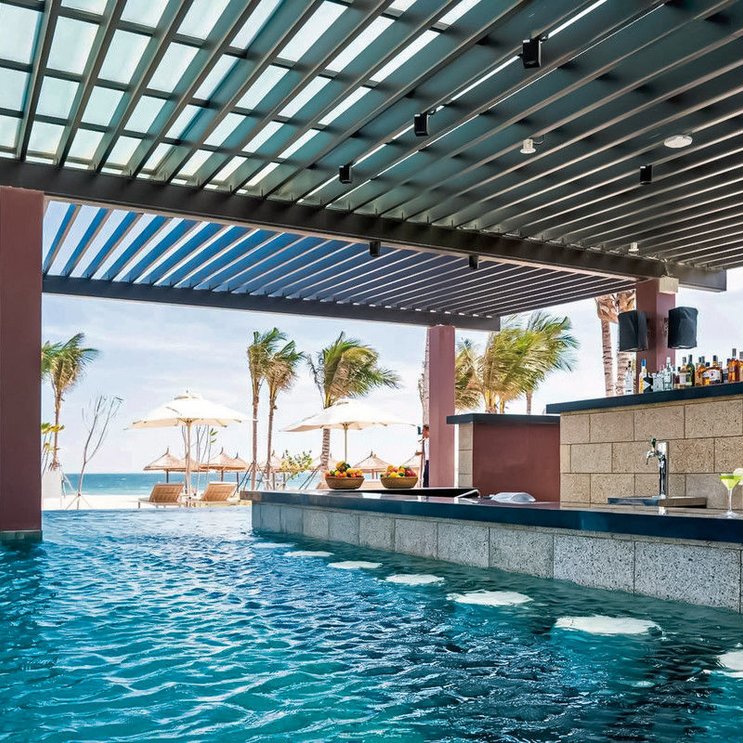 - 12 Pools, Liegen und Sonnenschirme