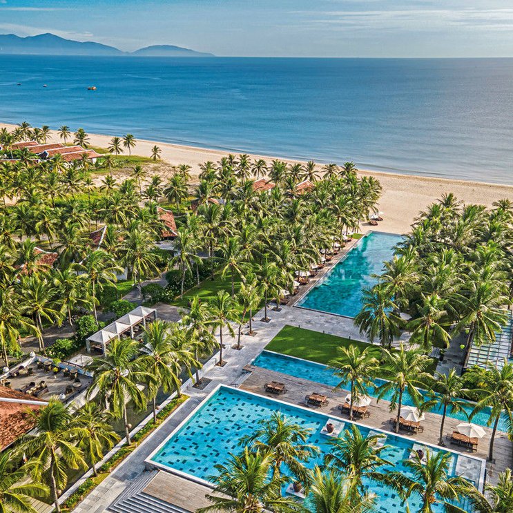 Das Hotel: Die exklusive Villenanlage ist eingebettet in das tropische Grün einer riesigen Gartenanlage am wunderschönen, unberührten Ha-My-Sandstrand. Das Design ist puristisch mit vietnamesischen Elementen und im Einklang mit dem Feng-Shui-Stil. Neben 3 Restaurants und 2 Bars verfügt das Resort über 3 großzügige Swimmingpools (davon einer im Winter beheizt), Wassersportmöglichkeiten, Boutique und einen beeindruckenden Spa- & Wellnessbereich. Kinder von 4 bis 12 Jahren werden im "Chuon Chuon Kids Club" betreut. Die historische Altstadt von Hoi An, die zum UNESCO-Weltkulturerbe ernannt wurde, mit zahlreichen Sehenswürdigkeiten, Geschäften, Restaurants und Bars ist ca. 15 Autominuten (Resort-Shuttle ohne Gebühr), der Flughafen Danang ca. 30 km entfernt.