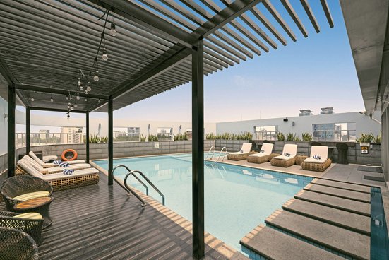 - 1 Pool: auf der Dachterrasse, Sonnenschirme, Liegen