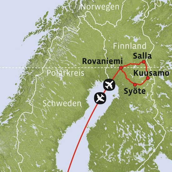 Tauchen Sie ein in ein arktisches Märchen und geben Sie sich auf eine Reise durch das winterliche Finnland. Die Unterkünfte auf dieser Reise sind besonders schön und die Landschaften, die Sie erwarten werden Sie verzaubern. An zwei Standorten übernachten Sie mehr als eine Nacht und haben so auch Zeit für Aktiväten.