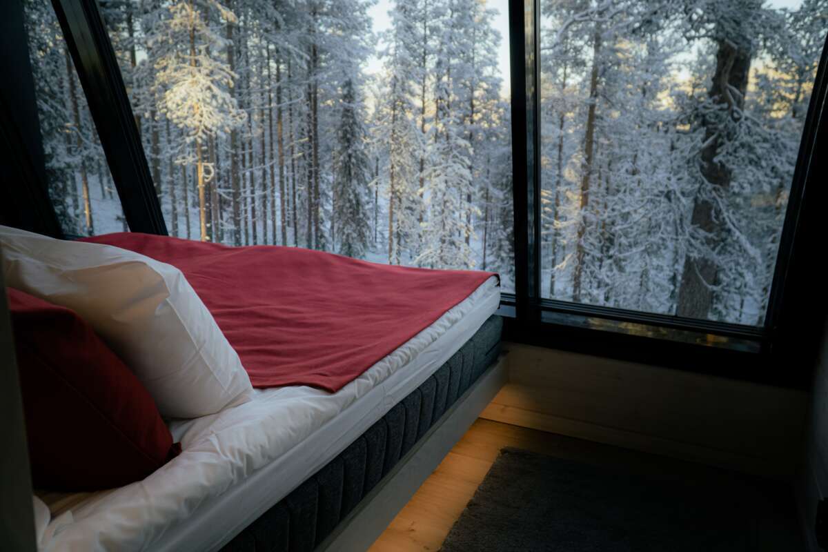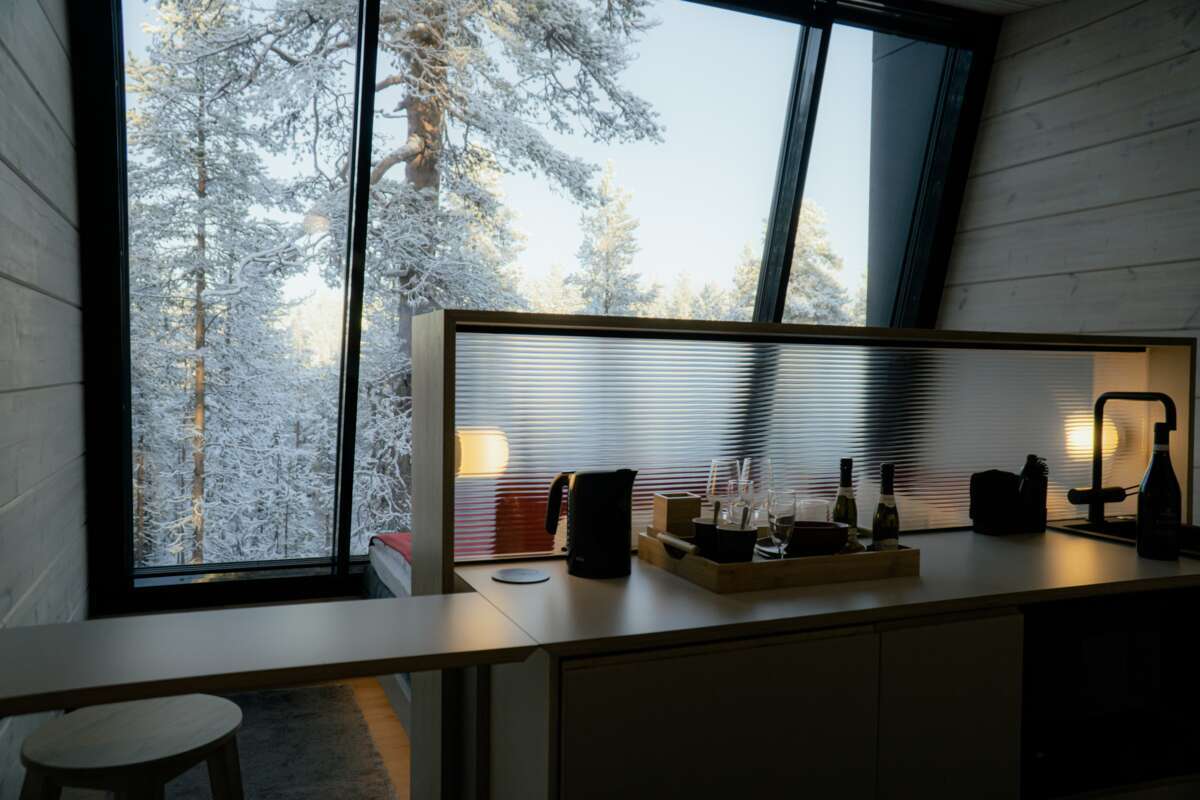 Fluganreise nach Rovaniemi und Übernahme Ihres Mietwagens. Die Hauptstadt von Finnisch-Lappland liegt unmittelbar am Polarkreis. Übernachtung im Lapland Hotel Sky Ounasvaara, das mit seinen grossen Fensterfronten und toller Aussicht in die verschneiten Bäume begeistert.