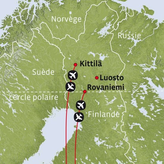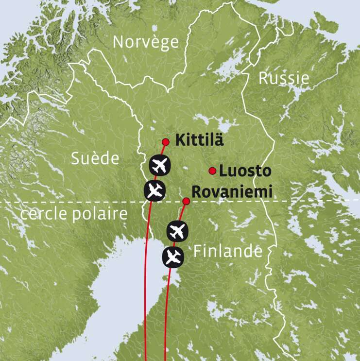 Fluganreise nach Rovaniemi und organisierter Transfer nach Luosto zu Ihrem Blockhaus.