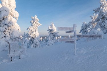Erklimmen Sie den angrenzenden und gleichnamigen Haus-Tunturi Luosto oder erkunden Sie auf Langlaufski oder mit Schneeschuhen den Pyhä-Luosto-Nationalpark.