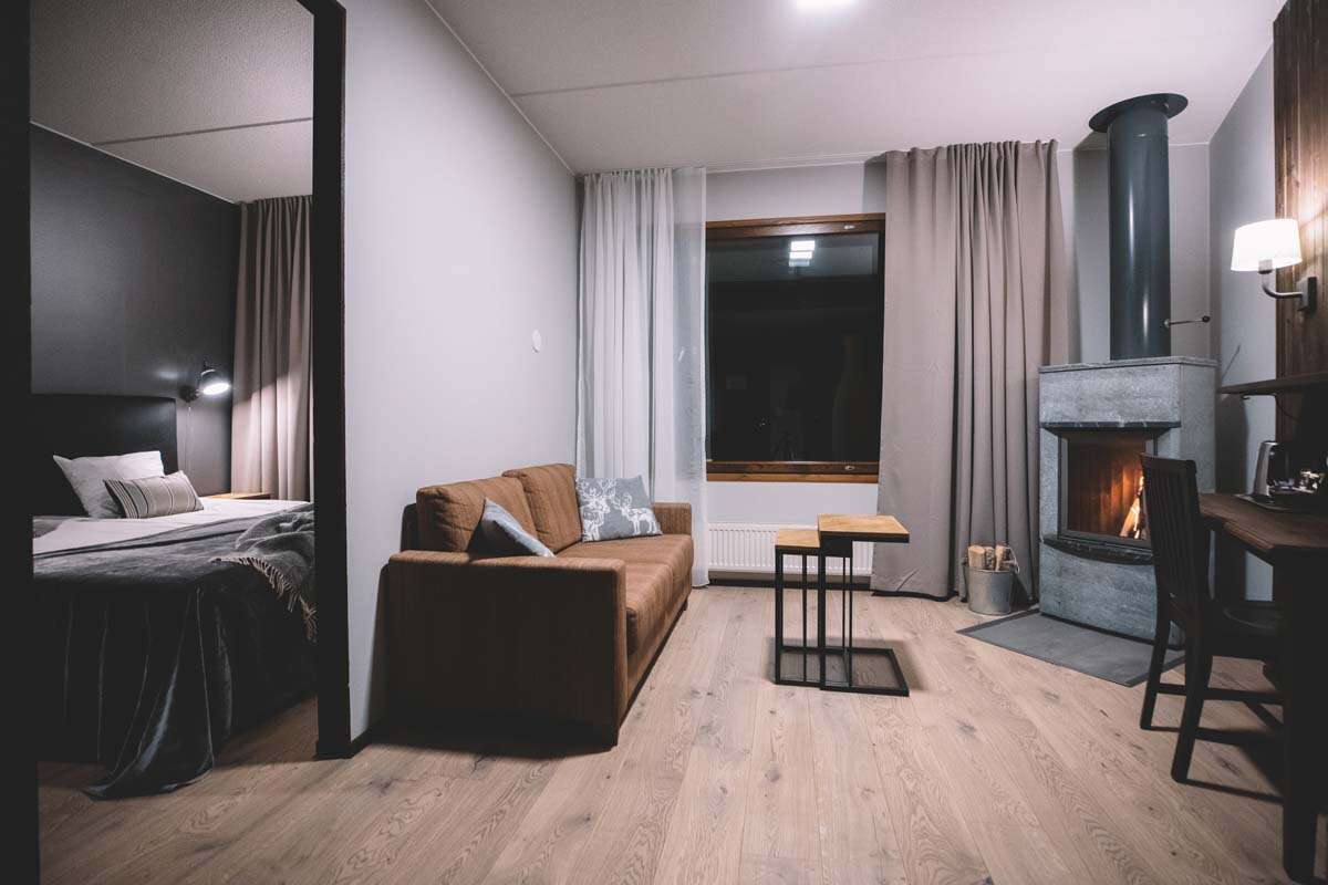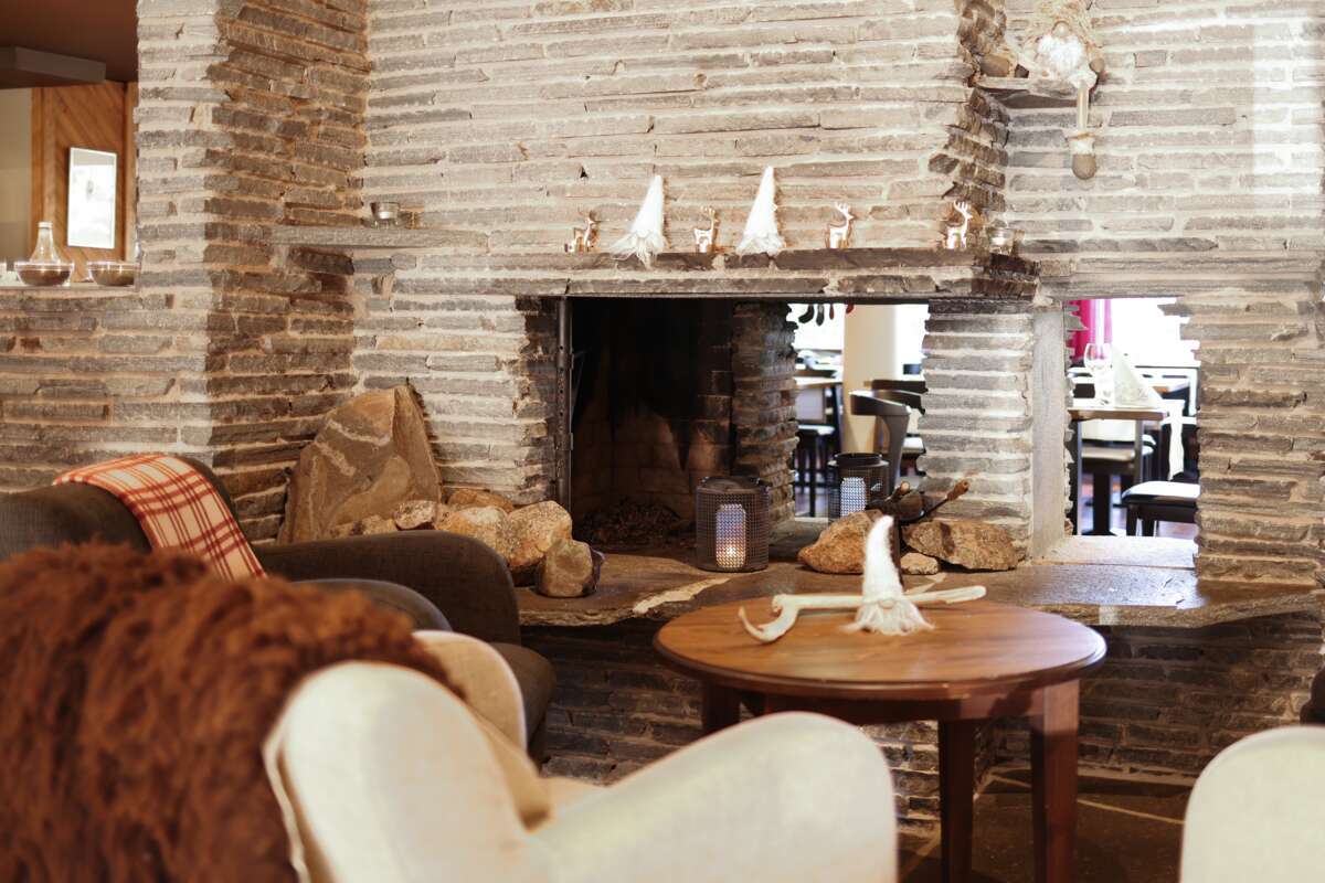 Der offene Kamin in der gemütlichen Lobby des Hotels ist ein viel besuchter Ort für Hotelgäste, an dem man zur Ruhe kommt. Der Kontakt mit anderen Gästen wird sicherlich in der einen oder anderen spannenden Unterhaltung über Kultur und Alltagsleben in Finnland enden.