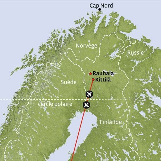 Fluganreise mit dem Kontiki-Direktflug nach Kittilä, Übernahme des Mietwagens und kurze Fahrt nach Rauhala. Eine kleine Aufmerksamkeit als Begrüssung von uns und Sie fühlen sich schon wie Zuhause.