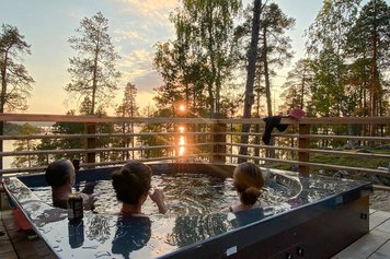 Eines der Ferienhäuser hat zwei Schlafzimmer während das Doppelhaus jeweils über ein Schlafzimmer sowie eine Loft mit zwei zusätzlichen Betten verfügt. Die Ferienhäuser bestechen durch den grossen und offenen Wohnbereich mit spektakulärer Fensterfront und Sicht auf den See. Die Innen- und Aussensauna mit Hot-Pot sowie die grosszügige Terrasse runden Ihr Ferienhauserlebnis im Herzen Lapplands ab.