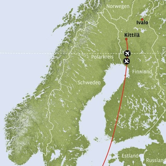 Fluganreise mit dem Kontiki-Direktflug nach Kittilä, Übernahme des Mietwagens und ca. dreistündige Fahrt nach Ivalo. Nach einer kurzen Begrüssung der Besitzer und Instruktionen zum Ferienhaus fühlen Sie sich schon wie Zuhause.