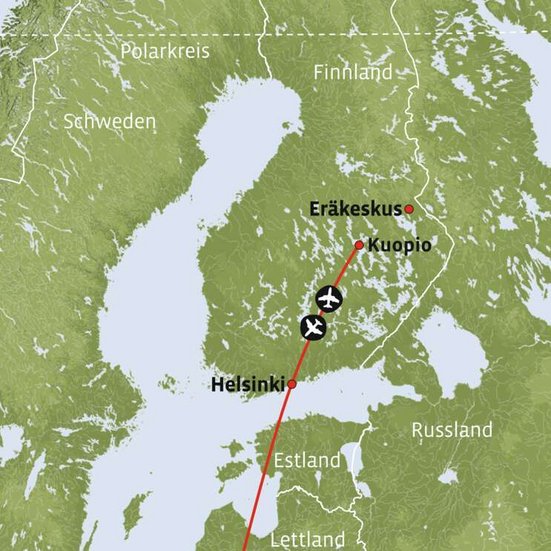 Anreise nach Kuopio oder Joensuu, Transfer zur Eräkeskus Wilderness Lodge. Zimmerbezug, Abendessen und erste Informationen sowie Kennenlernen der Guides.