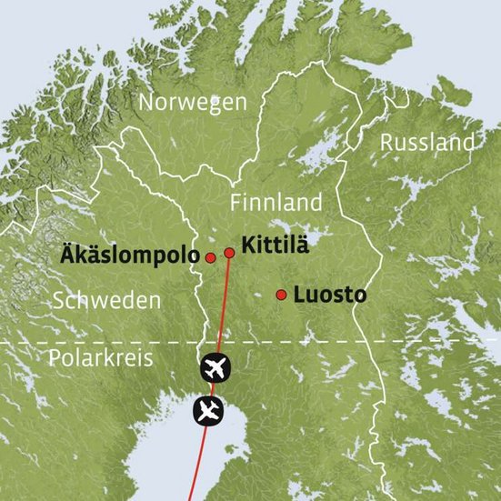 Fahrt zum Flughafen Kittilä, Rückgabe des Mietwagens und Rückflug in die Schweiz.